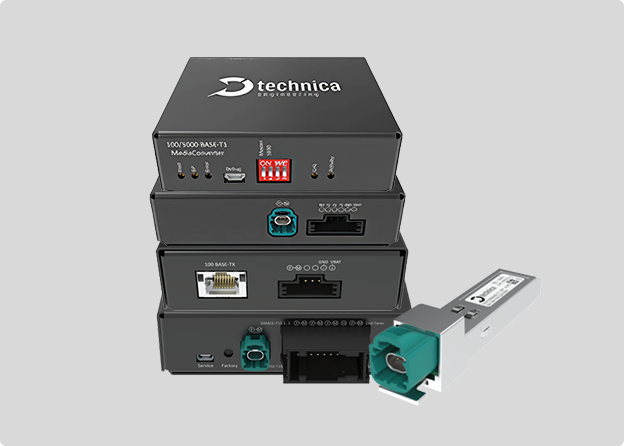 Our products enable seamless physical layer conversion between Automotive Ethernet and standard Ethernet, ensuring smooth integration between in-vehicle networks and test environments. Designed for flexibility and performance, they support a wide range of connectors providing compatibility with diverse use cases.
