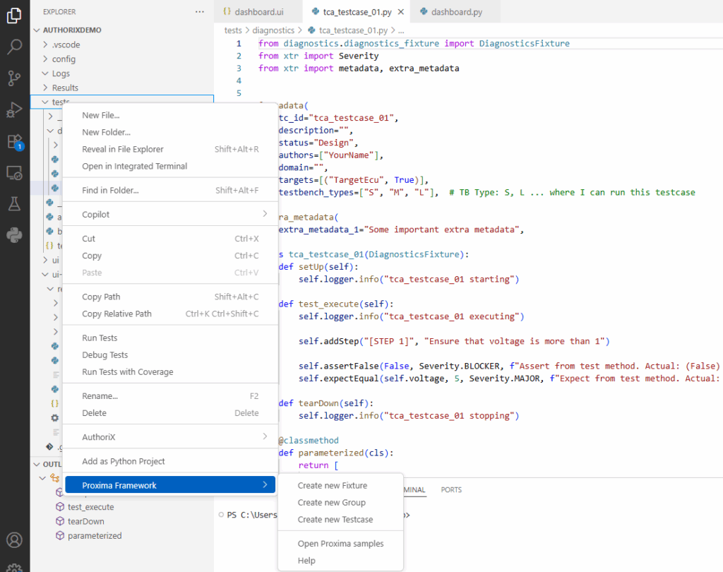 Figure 1 : Microsoft Visual Studio Code Plugin for Python based Test Case Creation